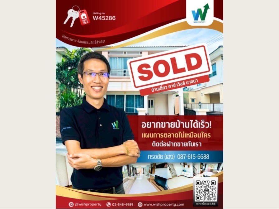 ตัวแทนขายของเรา ปิดการขายเพิ่มอีกหลังอีกแล้วค่ะ บ้านเดี่ยว คาซ่าวิลล์ บางนา